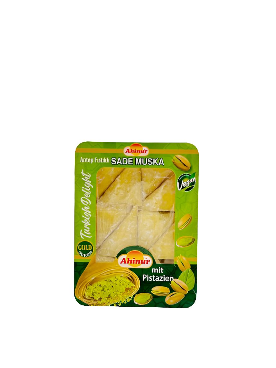 Genieße den traditionellen Geschmack von Ahinur Sade Muska, einem köstlichen türkischen Delight mit feinsten Antep-Pistazien. Diese zarte, süße Spezialität ist perfekt für Genießer und Liebhaber orientalischer Süßwaren.