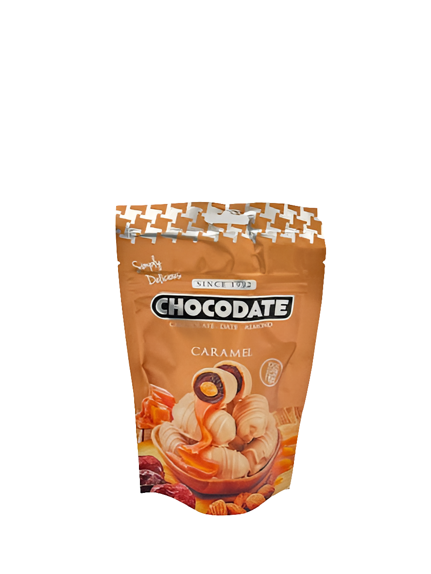Erlebe den einzigartigen Geschmack von Chocodate Caramel – eine köstliche Fusion aus orientalischer Süße und cremigem Karamell. Eine knackige Mandel, umhüllt von einer zarten Dattel und überzogen mit feinster Karamell-Schokolade – ein wahrer Genuss für Schokoladenliebhaber!